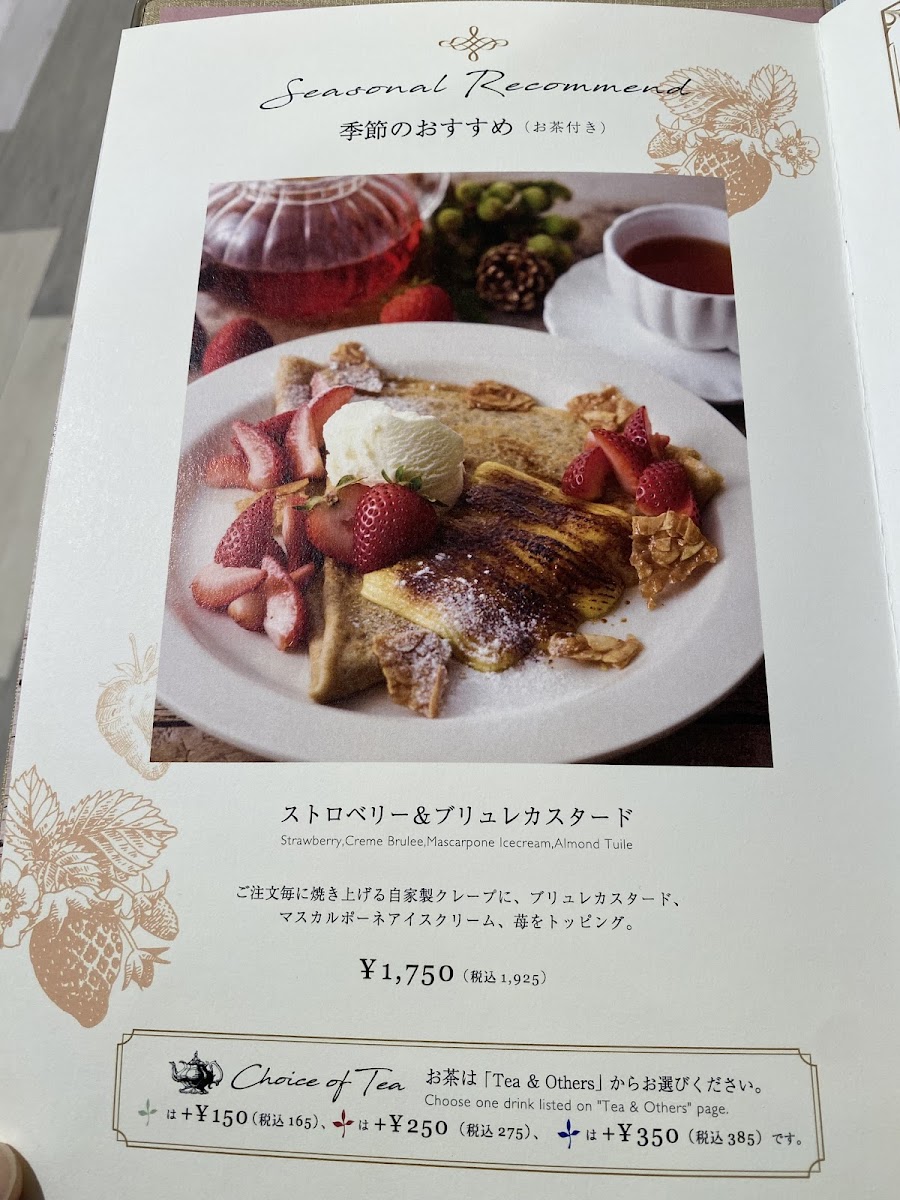 Finishing your meal with the Fruits Fruits Mille Crepe is a must—this indulgent dessert layers banana, kiwi, mango, orange, and strawberry, making it a feast for both the eyes and palate. Pair your dishes with a unique selection of teas, including their exclusive Afternoon Tea Blend, crafted to perfectly complement the flavors.